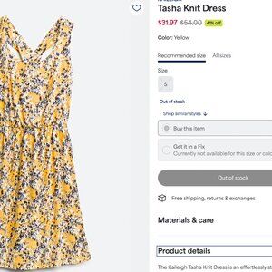 NEW with tags Stitch Fix Kaileigh Tasha Knit Mini Dress in Yellow with blue floral design, size Small.