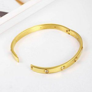 NEW Yellow Gold Round Diamond Bangle Bracelet