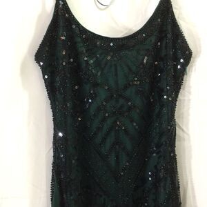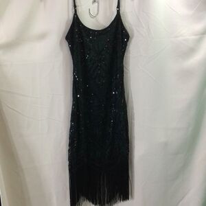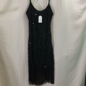 NEW Yessa Flapper Dress 1920s Dark Green Sequin Fringe Gatsby Style Small NWT