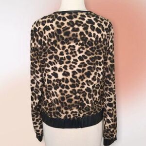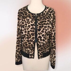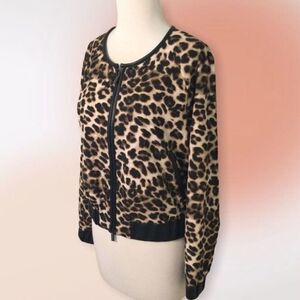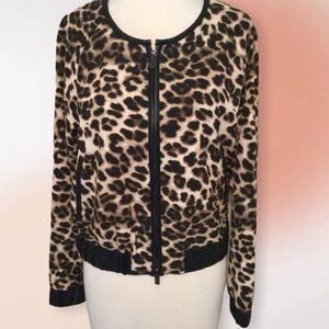 NEW York & Co 7th Ave Leopard Faux Leather Trim Zip Jacket S New