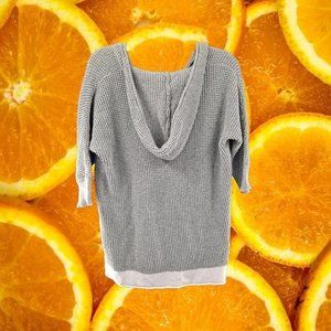 NEW York & Company Hooded 3/4 Sleeve Gray and White Sweater