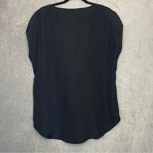 NEW York & Company L Large Top Shirt Black Solid Cap Sleeve V Neck Casual P21