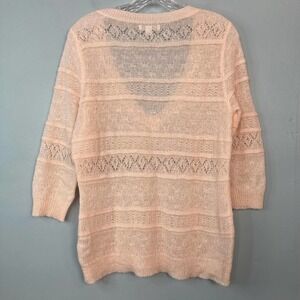 NEW York & Company Mohair Blend Delicate Open Knit Pink Sweater 3/4 Length Small
