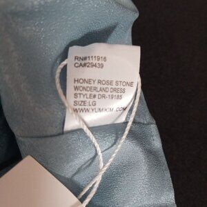This beautiful Yumi Kim Wonderland dress, in a size large, features a honey rose stone floral print. The modest top, long sleeves, and mini faux wrap skirt add to the charm of this new with tags item. Perfect for any event or night out.