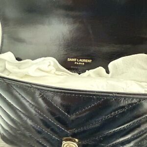 Luxurious black quilted design. Striking gold YSL logo. Ideal for stylish outings.
