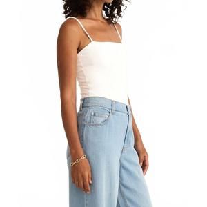 Introducing the Z Supply Lane Luxe Bodysuit, a seamless wardrobe staple in crisp white designed for minimalist, vacation-ready style. Featuring sleeveless spaghetti straps and a chic square neckline, this bodysuit is crafted from a soft nylon blend offering a comfortable fit. Designed with adjustable straps and a convenient snap closure, it effortlessly pairs with any outfit. Composition: 90% Nylon, 10% Spandex. Care: Machine wash and lay flat to dry. Model is 5'7" and wearing a size extra small.