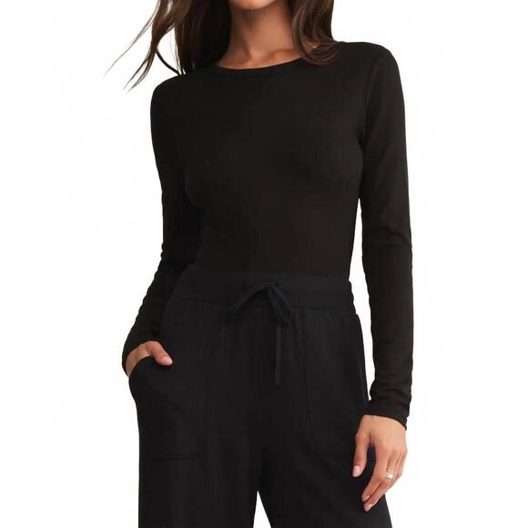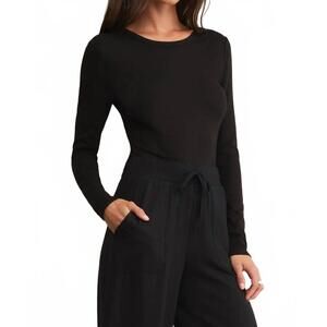 Discover the Z Supply Second Skin Crew, a versatile long sleeve top crafted from the brand's signature Second Skin Baby Rib fabric. Composed of 92% Rayon and 8% Spandex, it offers a sleek and stretchy fit, perfect for layering. This black crewneck top features a pull-on closure, making it an essential wardrobe foundation. Care for it with a machine wash on the gentle cycle and lay flat to dry for best results.