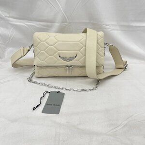 NEW ZADIG & VOLTAIRE Women’s Rocky XL Quilted Mat Scale Leather Bag – Flash