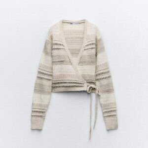 NEW ZARA BEIGE KNIT WRAP TOP