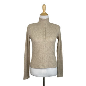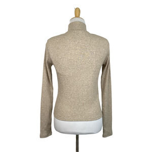 This is a ZARA Women's Beige Padded Shoulder Long Sleeve Top Size Small