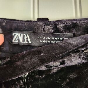 NEW ZARA Black Velvet Wide Leg Trouser Pants size Medium