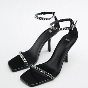 NEW ZARA CHAIN TRIM HEELED SANDALS SHOES THIN STRAP WOMENS SIZE 41 US 10