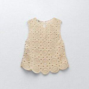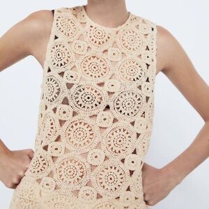 NEW ZARA CROCHET TOP SAND SLEEVELESS WOMENS SIZE XS BLOUSE TANK TOP