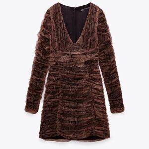 NEW ZARA DRAPED TULLE DRESS SNAKESKIN PRINT V NECK MINI DRAPED WOMENS SIZE M