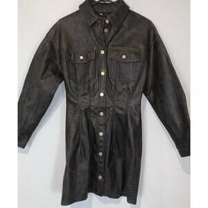 NEW ZARA Dark Brown Faux Leather Button Mini Dress Medium
