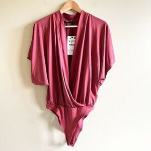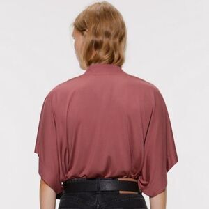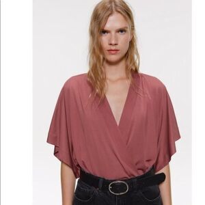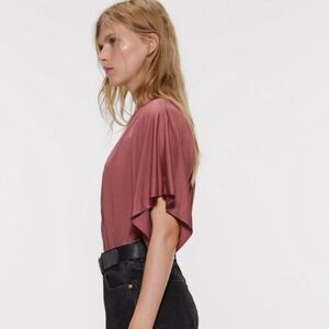 NEW ZARA Dusty Pink Mauve Cape Sleeve Bodysuit Blouse Top Womens Size S
