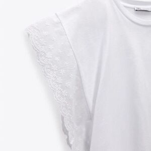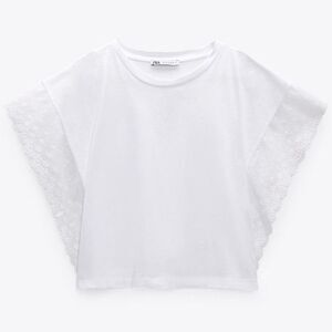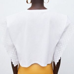 NEW ZARA EMBROIDERED TOP WHITE WOMENS SIZE S CREWNECK SHORT SLEEVE CROP