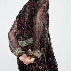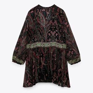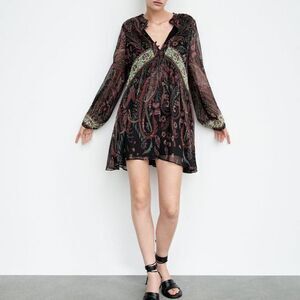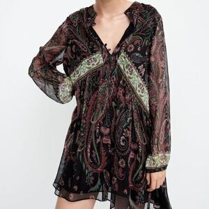 NEW ZARA FLOWY PRINTED DRESS MINI LONG SLEEVE BUTTONED SLIT CUFF WOMENS SIZE XS