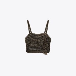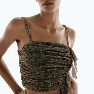 NEW ZARA GOLD THREAD RUFFLED TOP RUCHED FRONT WOMENS SIZE S W/ STRAPS