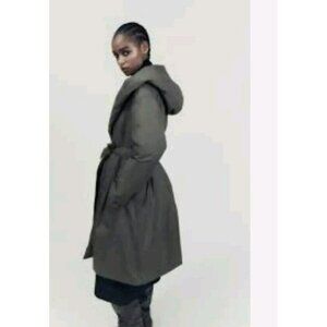NEW ZARA Green Hooded DOWN COAT JACKET Puffer ZARA HOODED P REF 8073 726 SIZE XS