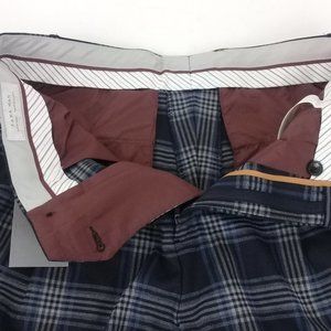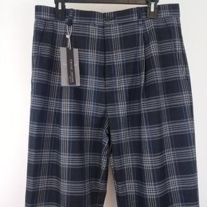 NEW ZARA MAN Blue Checked Pleated Trousers EU 40 US 31