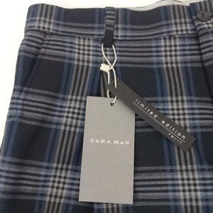 ZARA MAN Checked Pleated Men's Blue Trousers Limited Edition Size EU 40 - USA 31