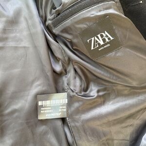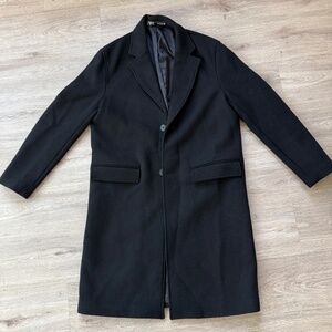 NEW ZARA MAN WOOL BLEND LONG TRENCH COAT BLACK 42 LARGE