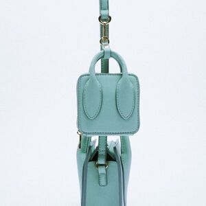 NEW ZARA MINI CROSS-BODY BAG BLUE CHAIN WITH DETACHABLE MINI BAG