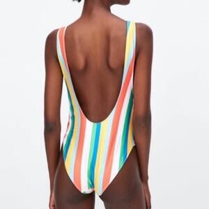 NEW ZARA ONE PIECE SWIM SUIT RAINBOW STRIPE SMALL