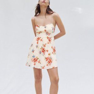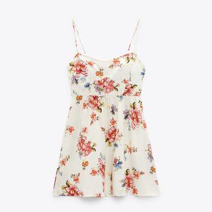 NEW ZARA PRINTED CORSET STYLE DRESS LINEN SPAGHETTI STRAPS WOMENS SIZE M