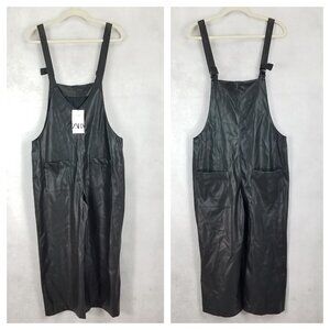 NEW ZARA S Jackie Faux Leather Jumpsuit Bloggers Favorite Crop Black Reversible