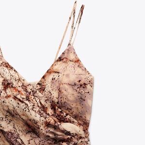 NEW ZARA SATIN EFFECT PRINT DRESS MINI V NECK ASYM