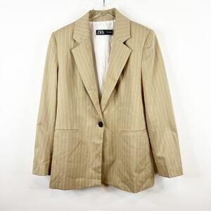 NEW ZARA Striped Oversized Menswear Inspired Blazer S Tan
