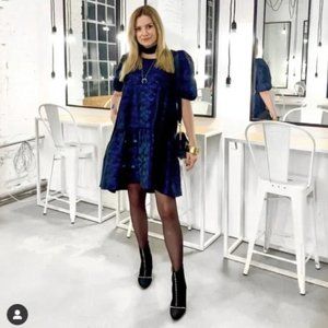 NEW ZARA Voluminous Jacquard Metallic Blue Black Camo Swing Dress XS