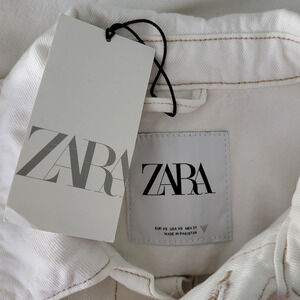 NEW ZARA White Contrast Topstitching Denim Jacket Turn-up Sleeves XS Boho Beachy