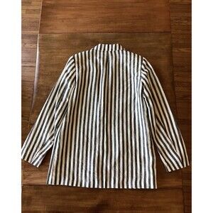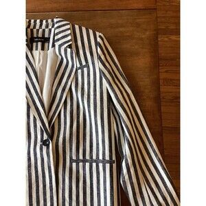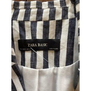 NEW ZARA Women's Blazer Jacket Navy Ivory Striped Retro Classic Preppy Sz Medium
