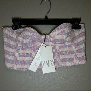 NEW ZARA tweed strapless corset crop top women’s size medium