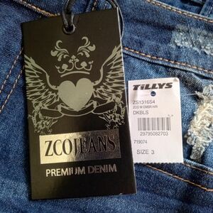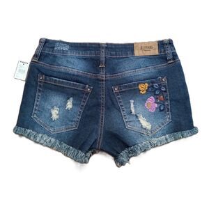 NWT NEW! ZCO Sz 3 Women's Juniors Jrs Floral Flower Embroidered Distressed High Rise Cut Off Denim Shortie Jean Shorts with raw frayed hem