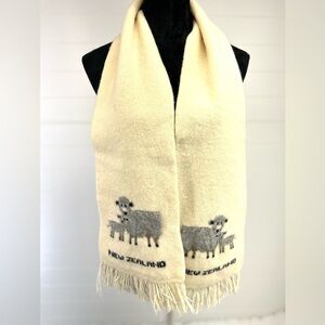 NEW ZEALAND 100% MERINO LAMBSWOOL! Ivory scarf with Mom & Baby Grey Sheep