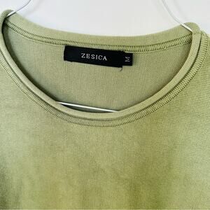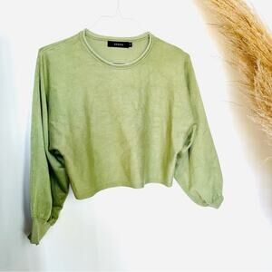 NEW ZESICA Sage Green Crop Bubble Long Sleeve Sweater Tie Pockets Shorts Set M
