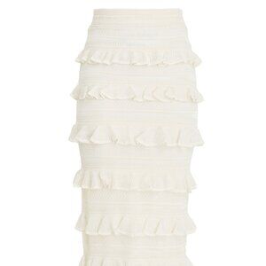 New with tags. The Zimmermann Wonderland Frill Midi Skirt is a romantic, statement-making piece featuring the brand’s signature feminine detailing. Crafted in a soft parchment hue, it showcases cascading frills, a flowing silhouette, and a flattering high waist. Perfect for special occasions, garden parties, or elevated daytime looks.