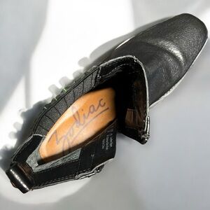 🌻NEW ZODIAC Black Arrow Leather Chelsea Square Toe Zip-Up Closure Boots Size 9