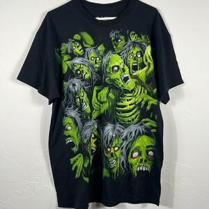 🔥💀🧟 “NEW” ZOMBIE PILE A.O.P. Liquid Blue Horror Halloween Tee XL - Never Worn