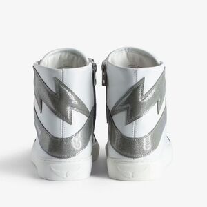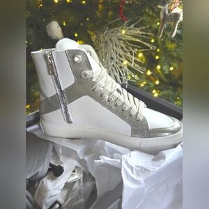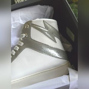 NEW! Zadig & Voltaire, ZV1747 High Flash High-Top Sneakers,White/Silver,Size 38