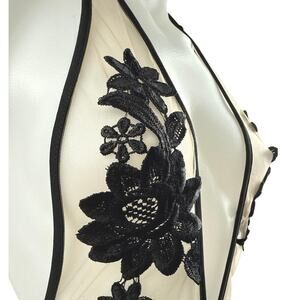 NEW Zaful Black Lace Splicing Halter High Waist One-Piece Swimwear Swimsuit Size L