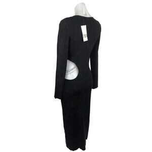 NEW Zara Black Cutout Waist Gold Chain Long Sleeve Midi Sweater Bodycon Dress L