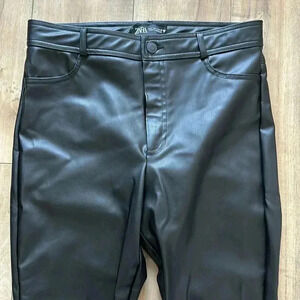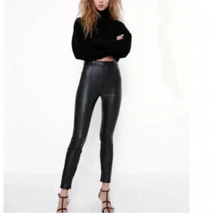 NEW Zara Black Faux Leather Pants Blogger Favorite Ankle Zip Sz L