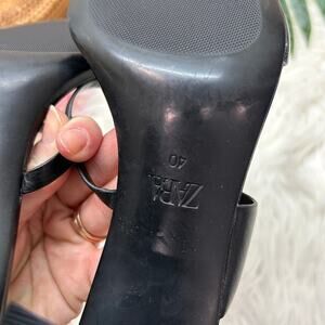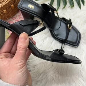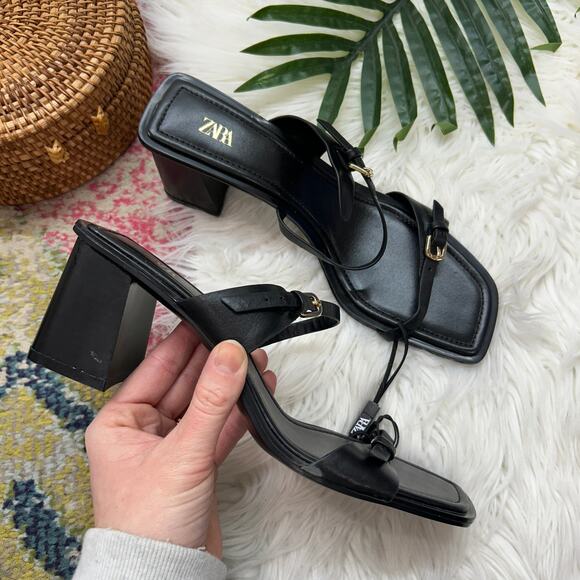 NEW Zara Black Heeled Sandal 9 Square Toe Faux Leather Strappy Buckle