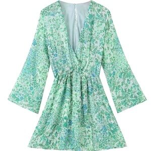 NEW Zara Blue Green Floral Romper, Size S, NWOT
