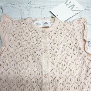 NEW Zara Cotton Pointelle Knit Romper Size 3-6 mos *TINY FLAW* Pastel Pink Beige